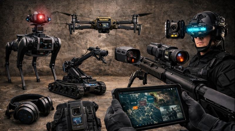 Aplicação: Drones evoluíram de ferramentas de filmagem para sensores táticos multifuncionais. Equipados com câmeras térmicas, de alta resolução e alto zoom, são indispensáveis para: reconhecimento de áreas de risco (favelas, fronteiras), monitoramento de grandes eventos, busca e resgate em áreas de difícil acesso, reconstituição de cenas de crime complexas e resposta a incidentes com reféns, fornecendo intel em tempo real sem expor vidas. Forças estaduais, como a Polícia Militar do Estado de São Paulo (PMESP), já possuem regulamentação interna (Portaria PM-017/2020) e esquadrões dedicados.